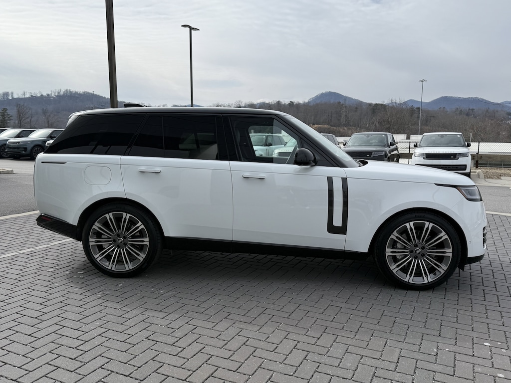 Range Rover Certified! CARFAX One-Owner. Clean CARFAX. Fuji White 2025 ' ' Range Rover SE AWD ZF 8-Speed Automatic 4.4L V8 Twin Turbocharged Ebony/Ebony w/Perforated Semi-Aniline Leather Seat Trim, 24-Way Htd/Cooled Massage Electric Fr Bucket Seats, Black Contrast Roof, Cold Climate Pack, Ebony Headlining, Heated Washer Jets, Heated Windscreen, Meridian 3D Surround Sound System, Shadow Exterior Pack, Wheels: 22" Diamond Turned w/Satin Dk Gry Contrast.